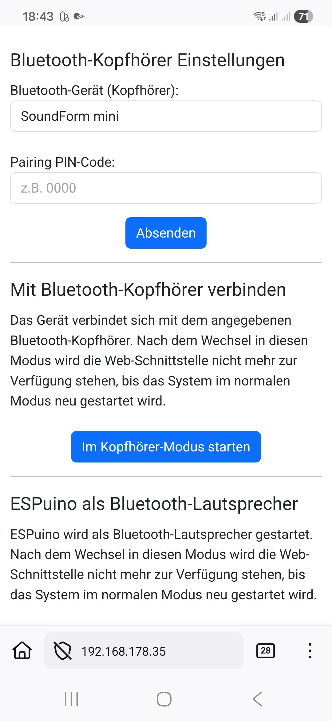 Ich dachte, dass das Webinterface im Bluetooth jetzt weiterhin verfügbar ist oder habe ich das falsch verstanden?