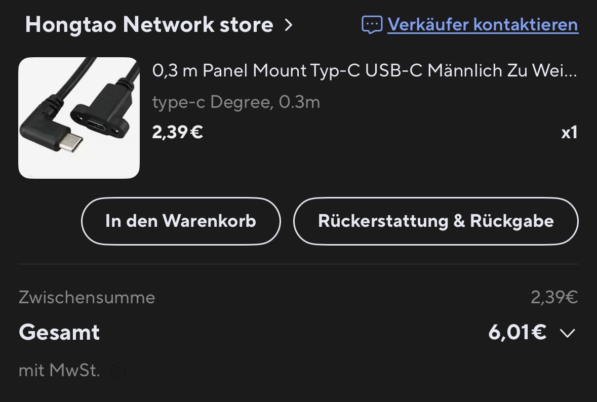 Man kann den link leider nicht mehr öffnen. Wenn ich mich richtig erinnere habe ich mir den Link Vorschlag für das USB-C Terminal von dir @biologist geholt. Du hattest damals dazu geschrieben das du die 90 Grad Varianten nicht getestet hattest. Hab dann auf gut Glück bestellt und hat gepasst. Laden geht, flashen habe ich noch nicht getestet. Habe an den stl files von @BlackYeti nichts verändert. Wenn das Übernahme ist, sollte es passen.