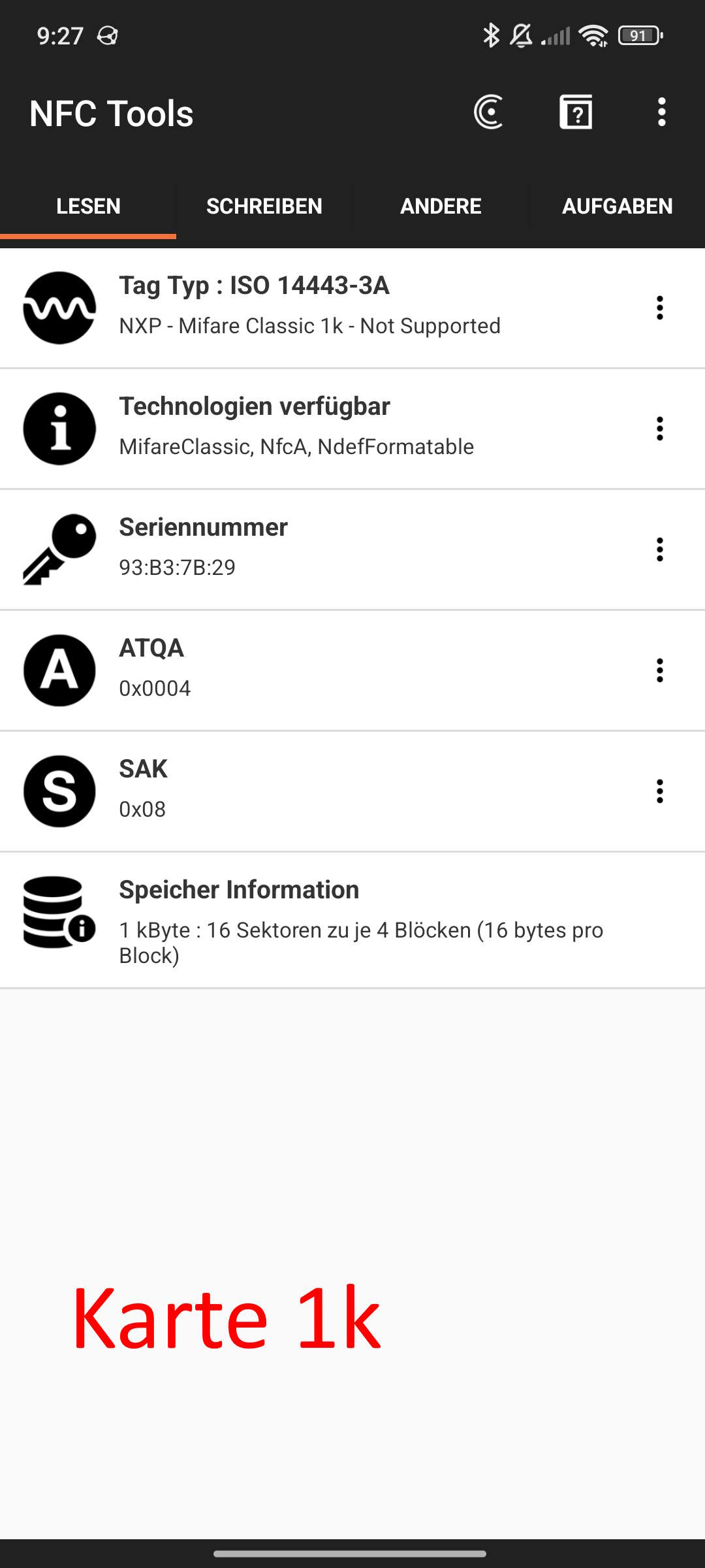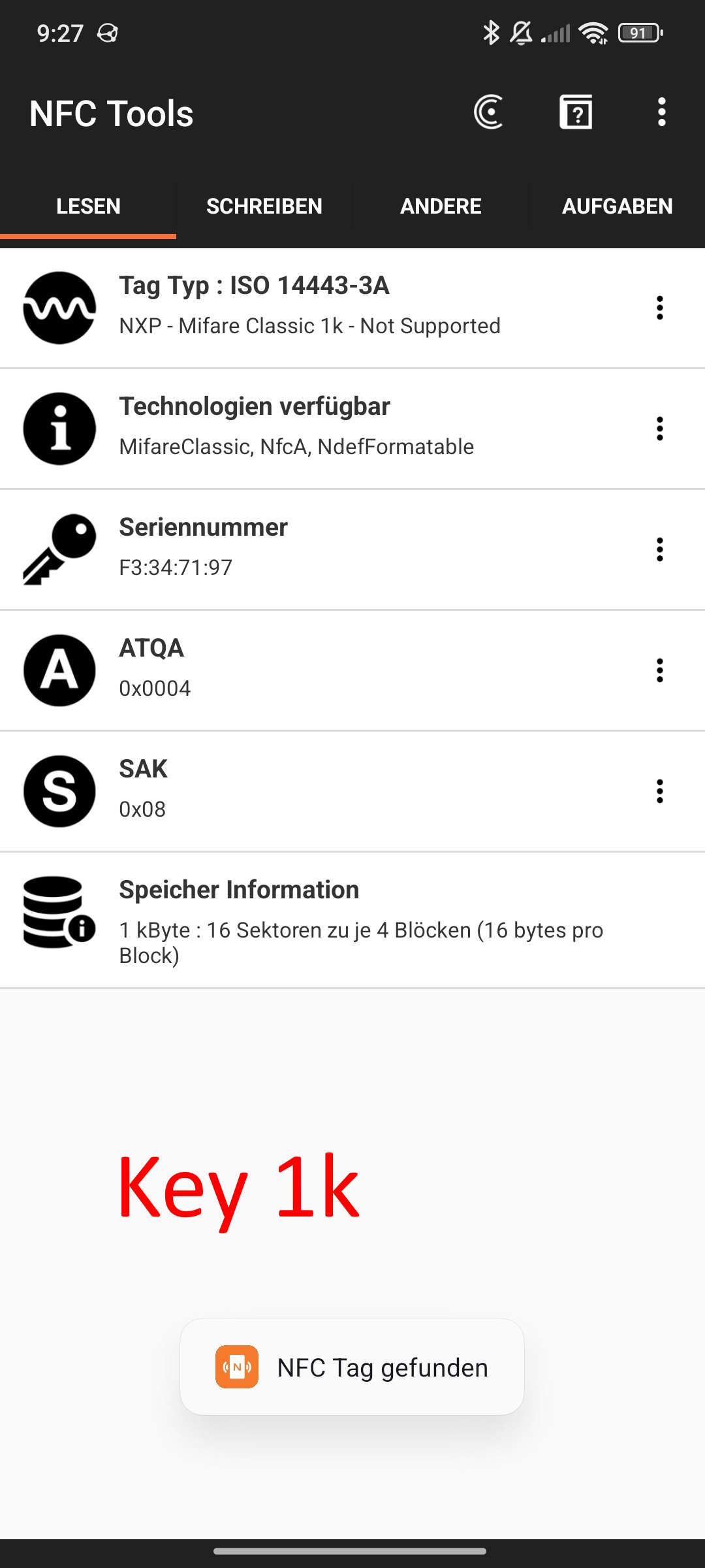 Sowohl die Classic 1K Karten als auch die Classic 1K Keys funktionieren.