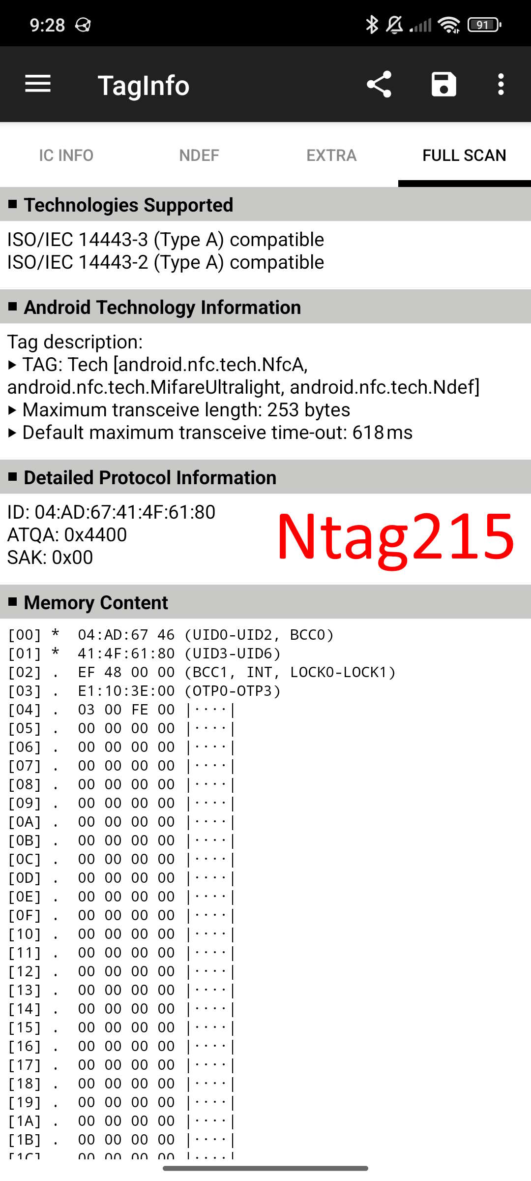 SAK ist beim NTAG215 0x00 - aber keine Ahnung was das bedeutet.