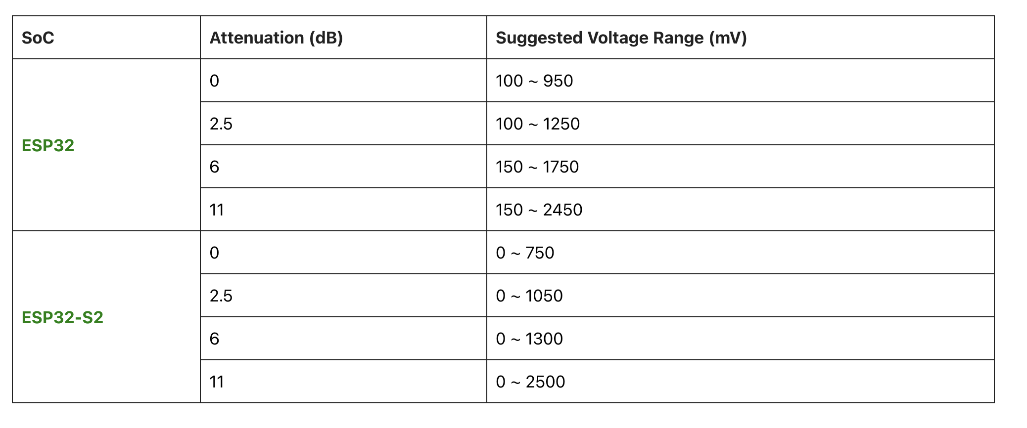 analogSetPinAttenuation(VOLTAGE_READ_PIN, ADC_0db);