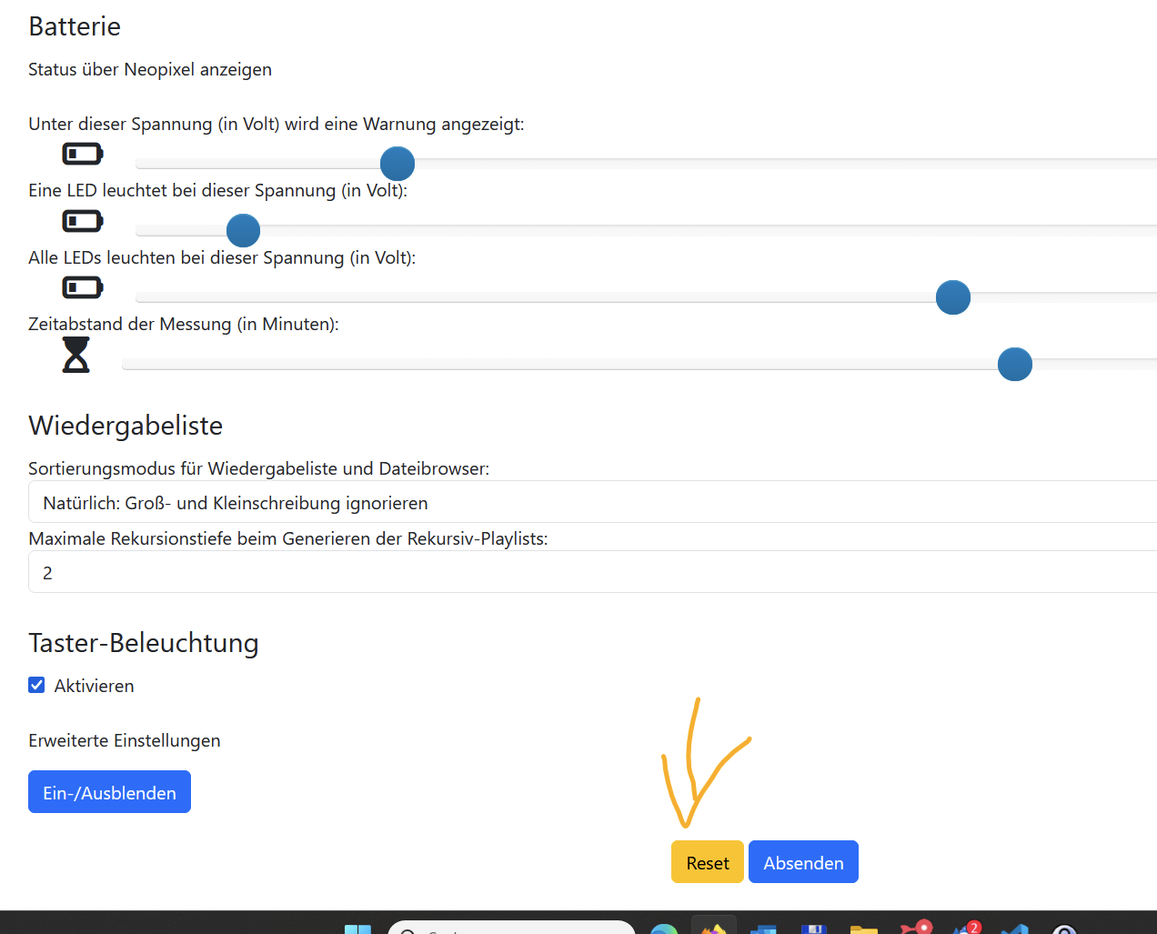 - Ich habe Änderungen gemacht und noch nicht auf absenden gedrückt. Mit dem Button werden diese widerrufen bzw der NVS neu ausgelesen (gleiche Funktion wie Seite neu laden)