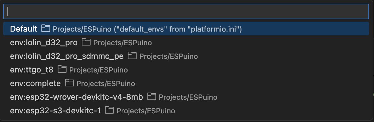 Hier wählt das das Environment aus, welches zum verwendeten Develboard passt. Bei der Complete ist es env:complete